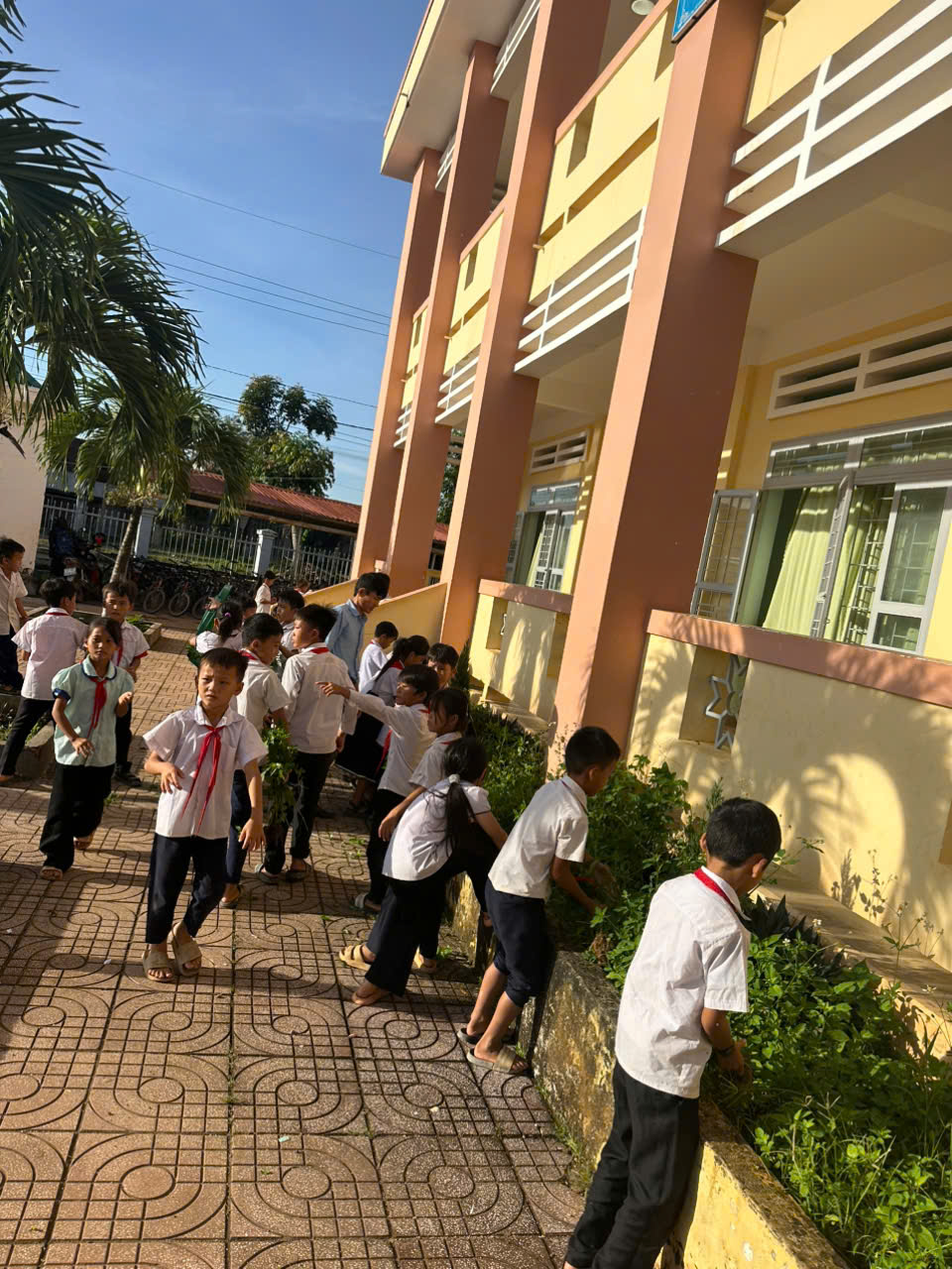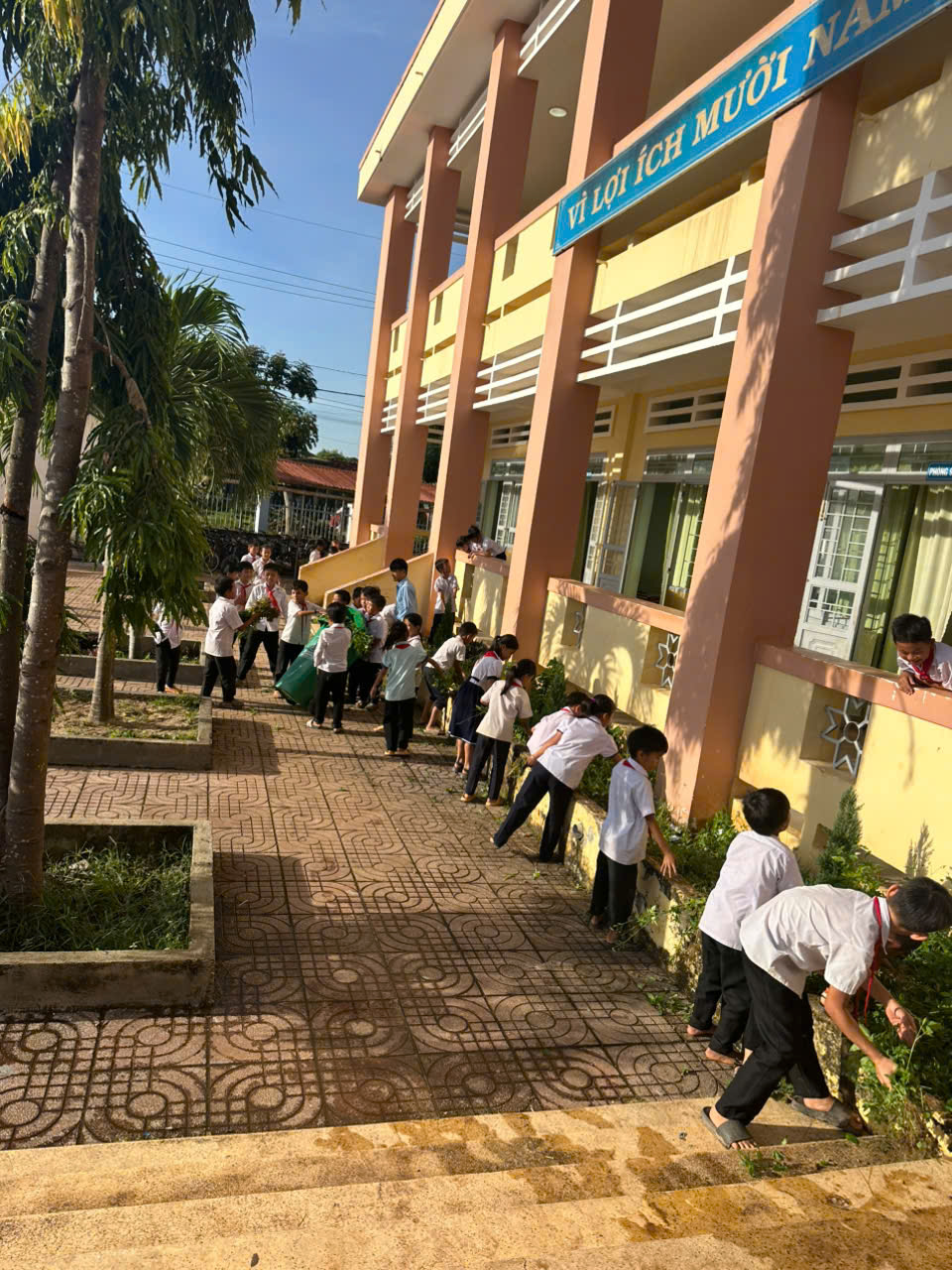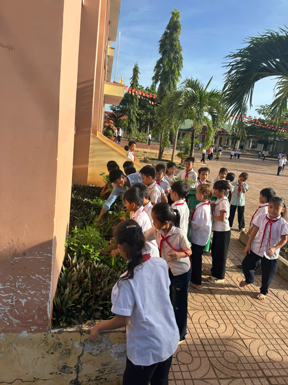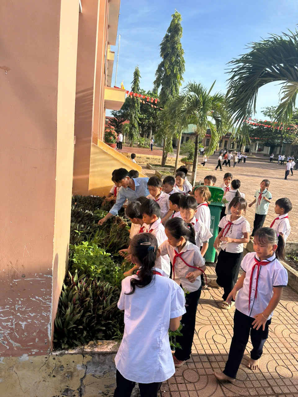 GV, HS tham gia trồng, chăm sóc cây hoa