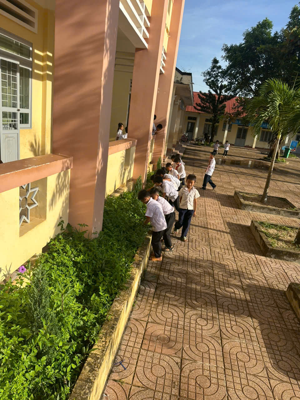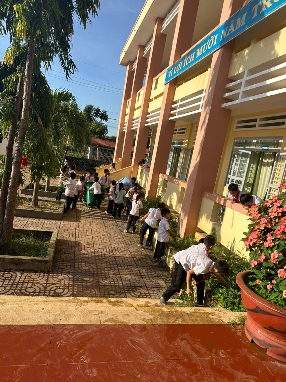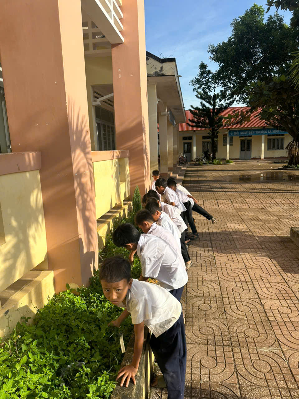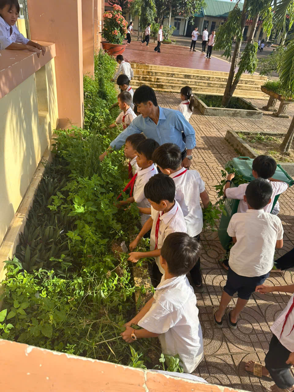 GV, HS tham gia trồng, chăm sóc cây hoa