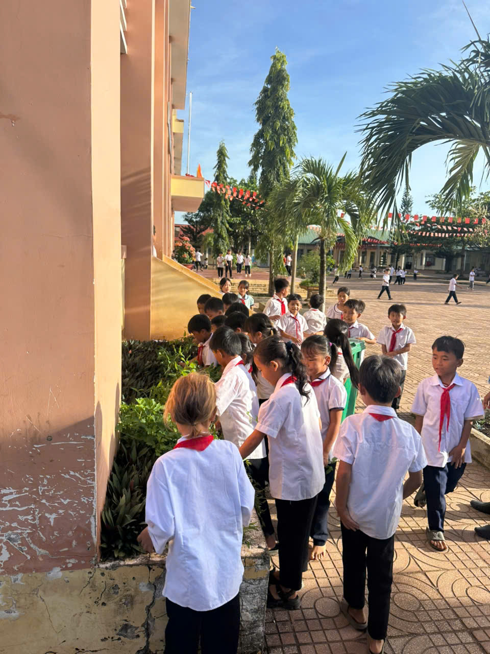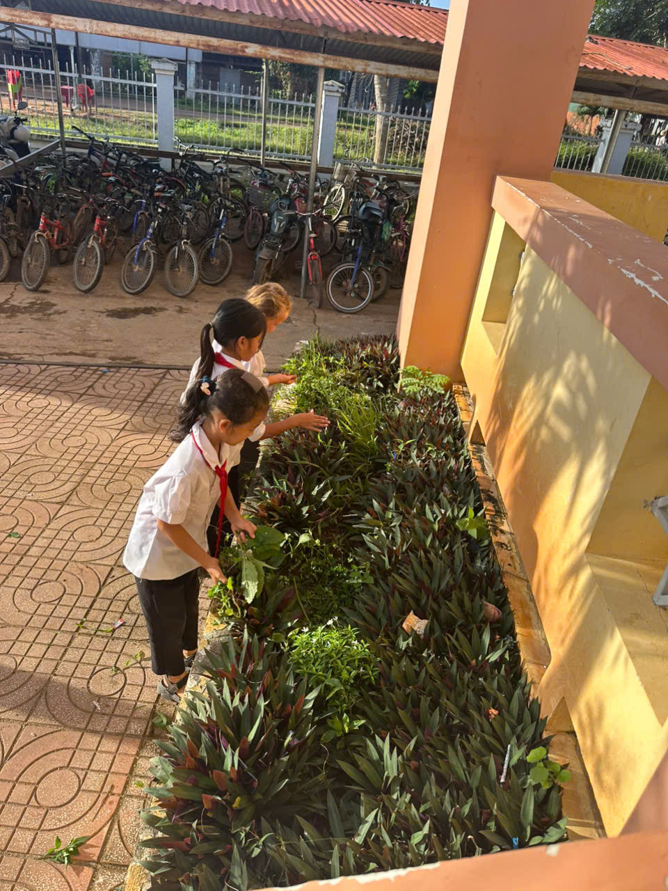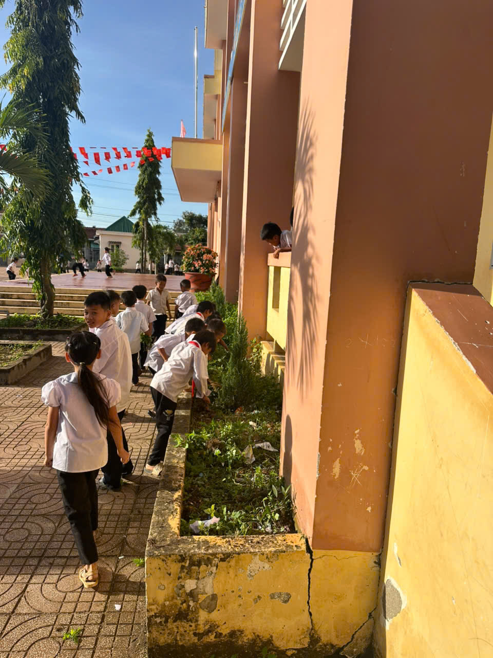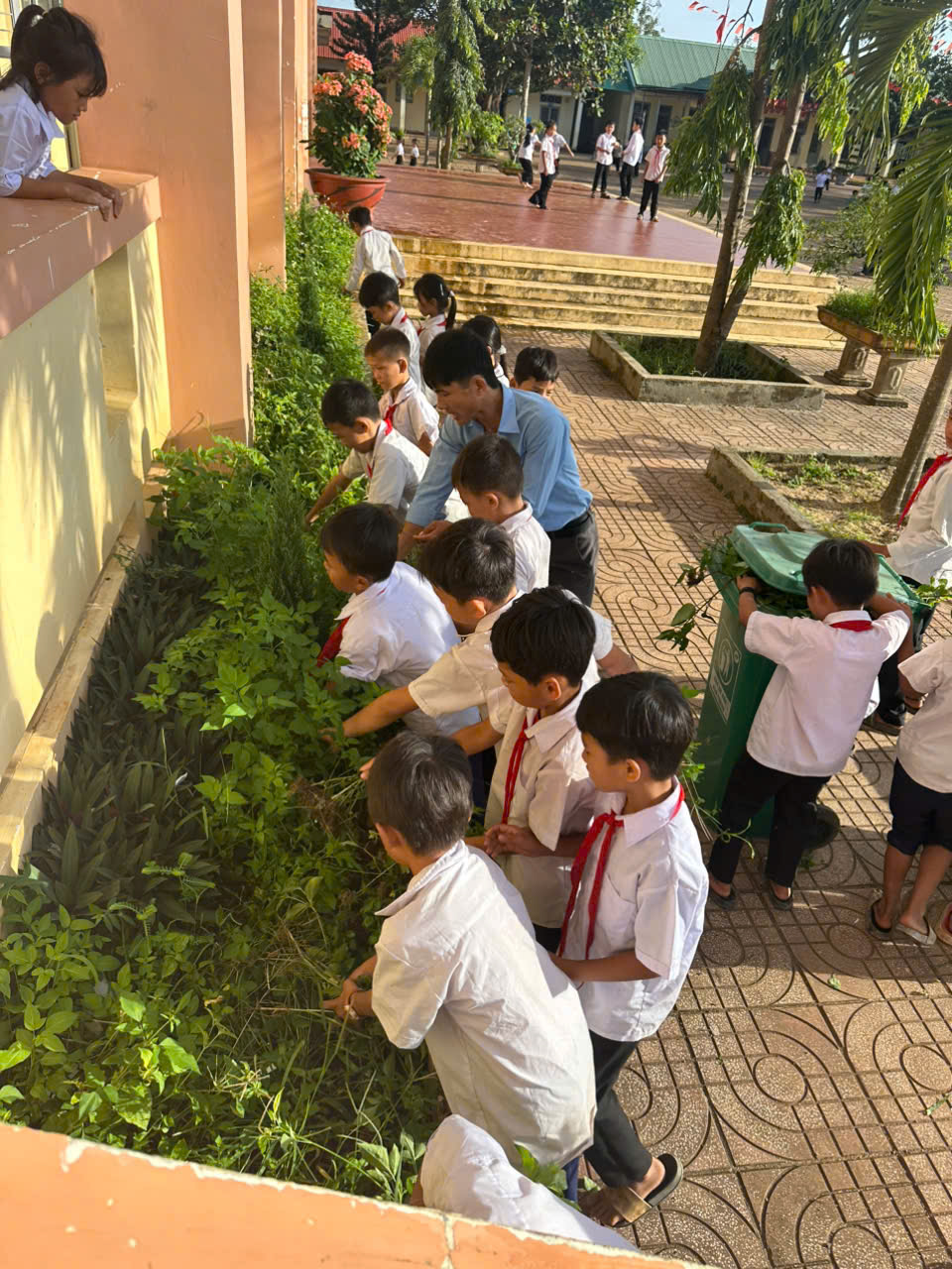 GV, HS tham gia trồng, chăm sóc cây hoa